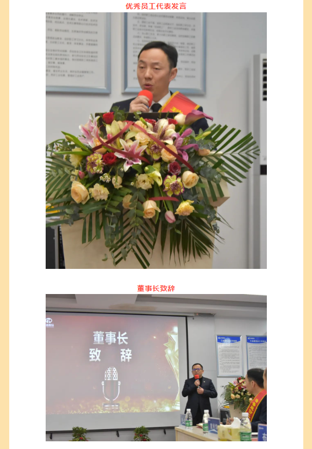 頒獎典禮結(jié)束后,由公司總裁黃立志先生致辭,黃總對全體員工表達了由衷感謝,感謝各位員工在過去一年的辛勤付出,并對優(yōu)秀員工進行了表揚,希望全體員工向優(yōu)秀員工學習,最后,黃總向大家致以最誠摯的祝福,宣布晚宴正式開始!